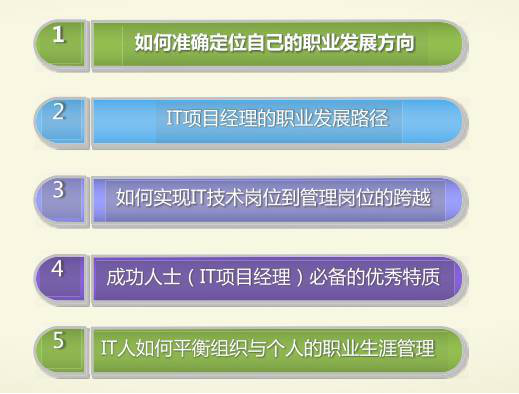 主講嘉賓Jason老師分別從以下五方面解構(gòu)IT項目經(jīng)理的職業(yè)生涯發(fā)展: