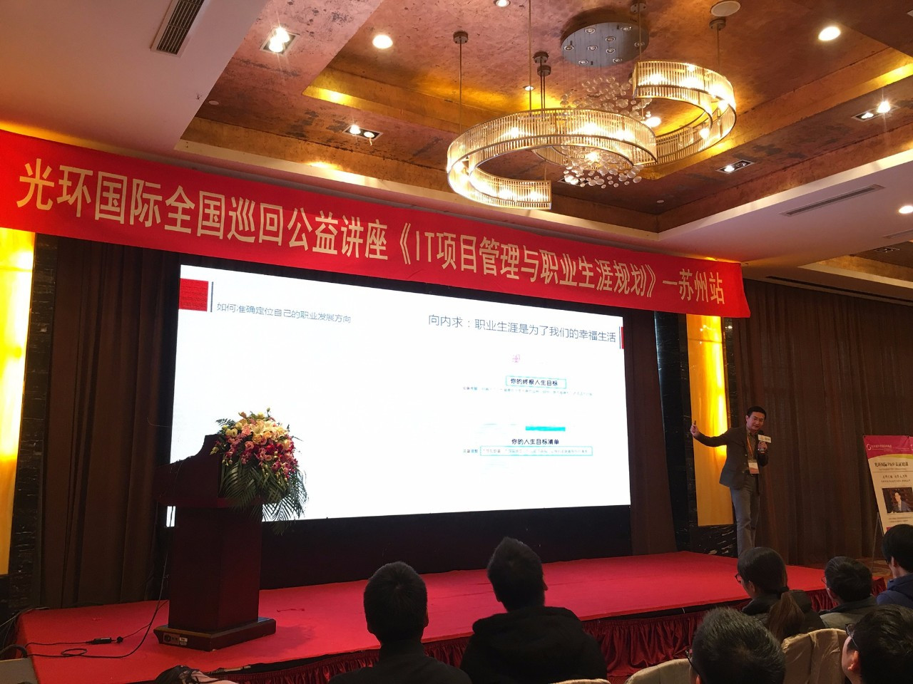 2017年12月16日,光環(huán)國際全國公益巡回講座來到了美麗的蘇州。本次公益講座的主題是《IT項目管理與職業(yè)生涯規(guī)劃》,受到了參會項目經(jīng)理的積極響應(yīng)。