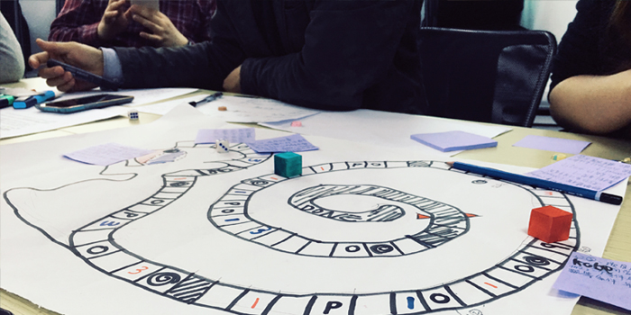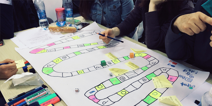 大家親自參與到了屬于自己小組的棋盤(pán)繪制,挑選出棋子,參與到游戲當(dāng)中,一旦走到游戲規(guī)則中設(shè)置好的環(huán)節(jié),就需要說(shuō)出對(duì)應(yīng)的項(xiàng)目故事。