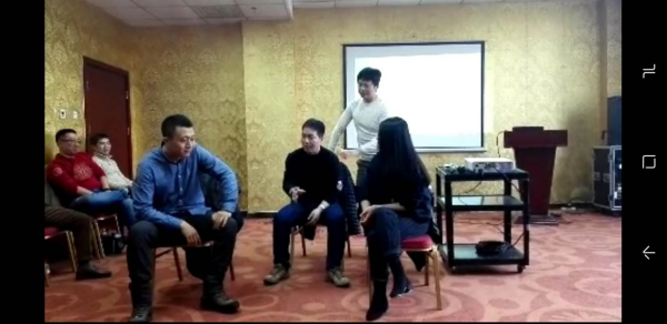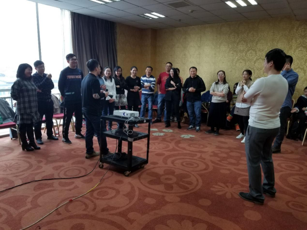 好,今天第一個(gè)即興活動(dòng)就是來記住別人的名字。30個(gè)人分成3個(gè)小組,一輪介紹后需要記住每個(gè)人的名字,即興指向任何一個(gè)人,并叫出他/她的名字。說不出來或者說錯(cuò),你需要優(yōu)雅的承認(rèn)自己的錯(cuò)誤,并慶祝式的離開團(tuán)隊(duì)轉(zhuǎn)到其他團(tuán)隊(duì)中重新來過。